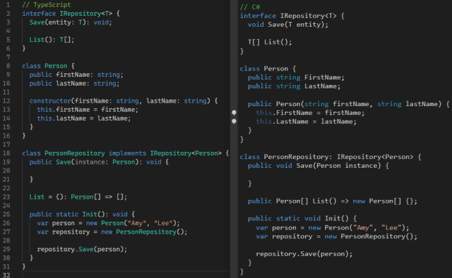 " It is no coincidence that modern JavaScript? programming with TypeScript? has some congruency with C# given that Anders Hejlsberg was the lead architect of the C# language and also led development of TypeScript?.